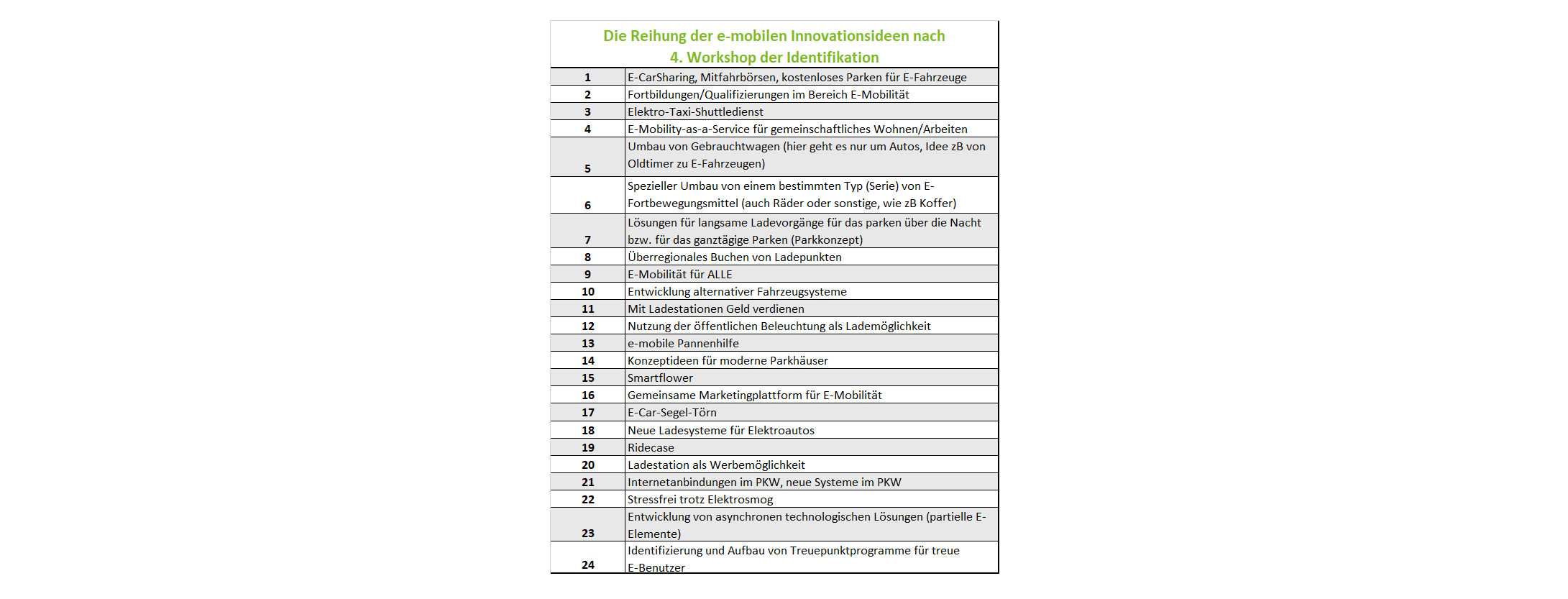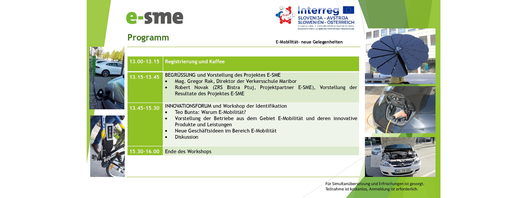 Der Workshop bot den TeilnehmerInnen neue Ideen und Themenfelder für den Geschäftsalltag. Die Durchführung erfolgte mit bilateralen Teilnehmer/Innen aus Österreich und Slowenien und war offen für alle Interessierte, Unternehmen, Stakeholder, NetzwerkpartnerInnen und ExpertInnen zum Thema E-Mobilität, aber auch zu themenrelevanten Bereichen. Das Ziel dieser Veranstaltung, die Identifikation und die erste grobe Definition von möglichen geeigneten Produkten und Dienstleistungen im Bereich der E-Mobilität, die auch für unsere Regionen geeignet sind und zur Steigerung der Wettbewerbsfähigkeit und Innovationskraft kleiner und mittlerer Unternehmen im Bereich E-Mobilität beitragen können, wurden mit sehr spannenden Ergebnissen erreicht.