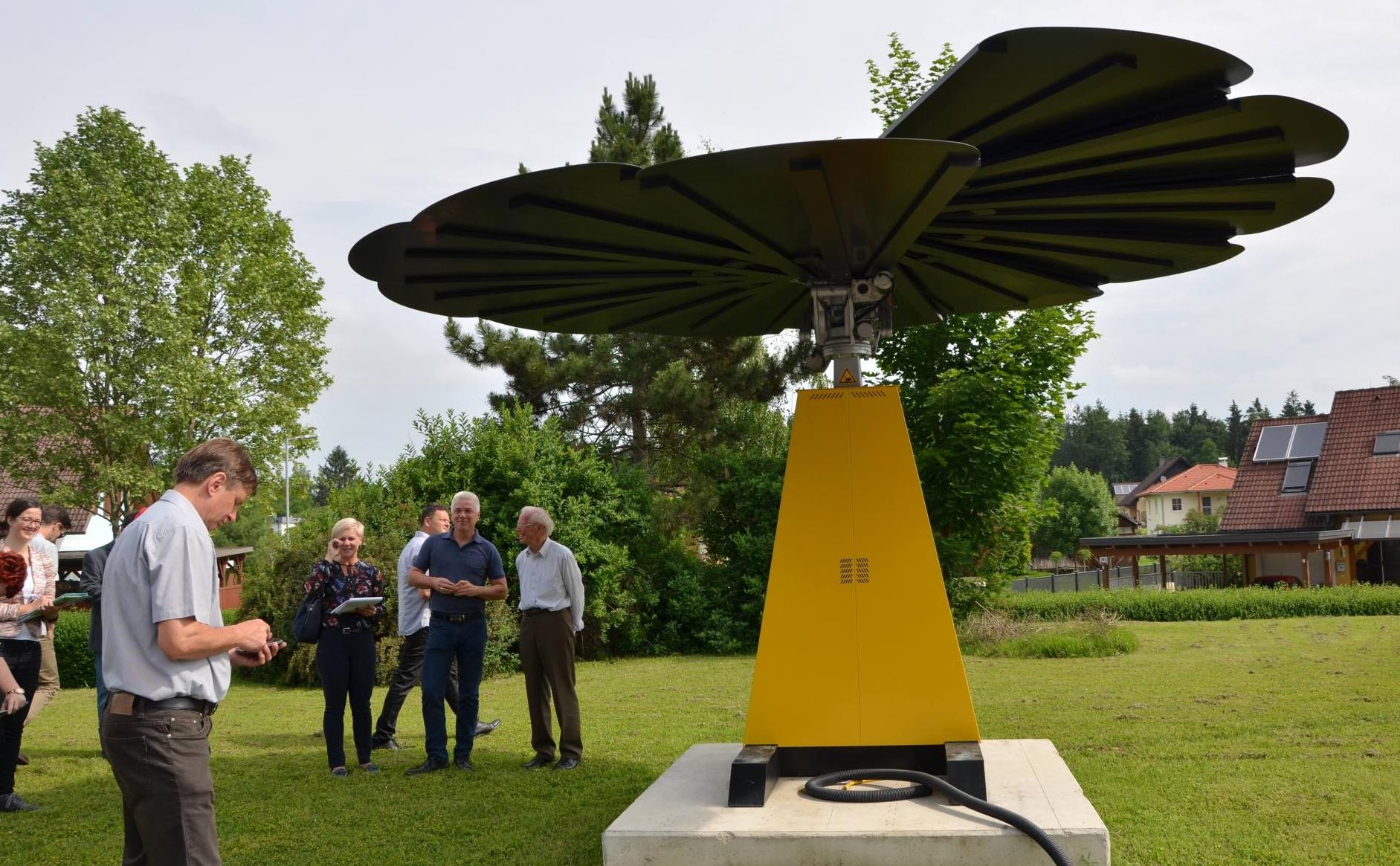 Wenn morgens die Sonne aufgeht, entfaltet sich smartflower POP vollautomatisch. Sie richtet ihren 18 m2 großen Solarmodulfächer zur Sonne aus und beginnt, für Sie Strom zu erzeugen – für Ihre heiße Dusche, Ihren frischen Kaffee, das Frühstücks-Radio. Dank astronomischer Steuerung und 2-achsiger Sonnennachführung wandert der Fächer im Laufe eines Tages zuverlässig mit der Sonne. Der Vorteil: Die Anlage fängt im Vergleich zu statischen Aufdachanlagen früher damit an, genau die Menge an Strom zu produzieren, die Sie benötigen. Kostenpunkt: ca. 17.000 € inkl. Montage. Die Garantiefrage ist momentan noch ungeklärt, da das österreichische Produkt an einen amerikanischen Anbieter verkauft wurde. Die Module sind jedoch hagelsicher, dies wurde unter einem 60 kmH-Beschuss mit Eiskörnern getestet.
